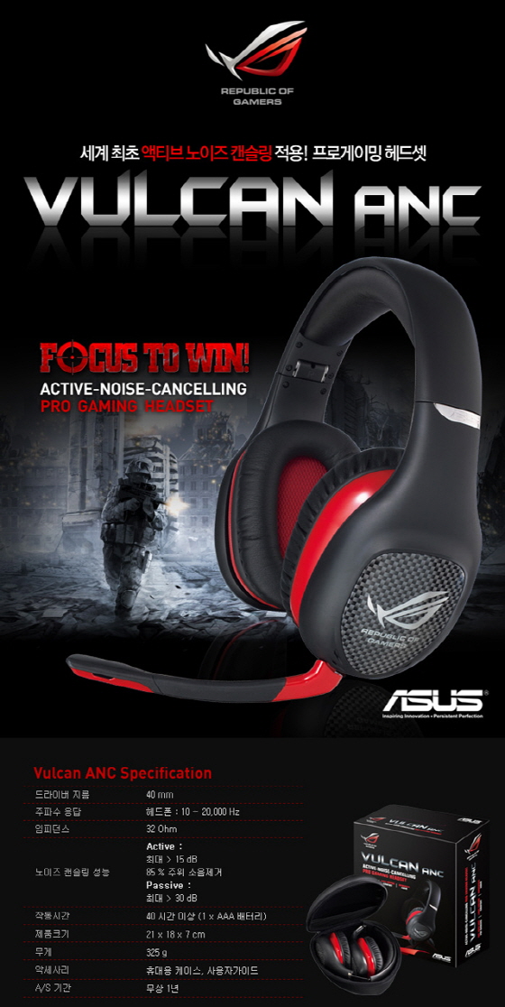 ASUStek사의 국내유통사인 에스티컴퓨터(http://www.stcom.co.kr, 대표 서희문)는 주변의 미세한 노이즈에 대해 역위상의 소리를 재생 노이즈를 제거해주는 액티브 노이즈 캔슬링(이하 ANC) 지원 신제품인 "ASUS Vulcan ANC 프로 게이밍 헤드셋" 을 출시하였다.