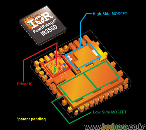 전원부는 총 12페이즈이며, 각 페이즈에는 IR3550 PowIRstage가 할당되어 다수의 모스펫이 적용되었던 기존 제품들에 비해 한층 간결한 형태로 구성되어 있다.