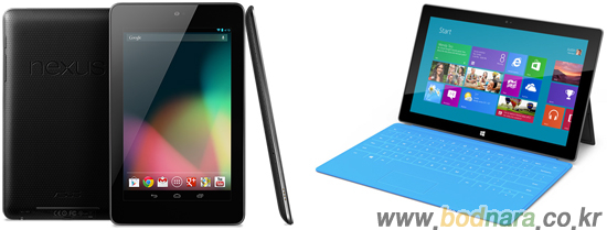 2012년 하반기에 아이패드를 위협할 만한 태블릿인 구글 넥서스7과 MS 서피스